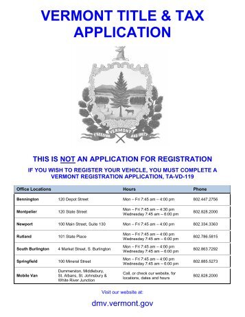 VERMONT REGISTRATION, TAX & TITLE APPLICATION